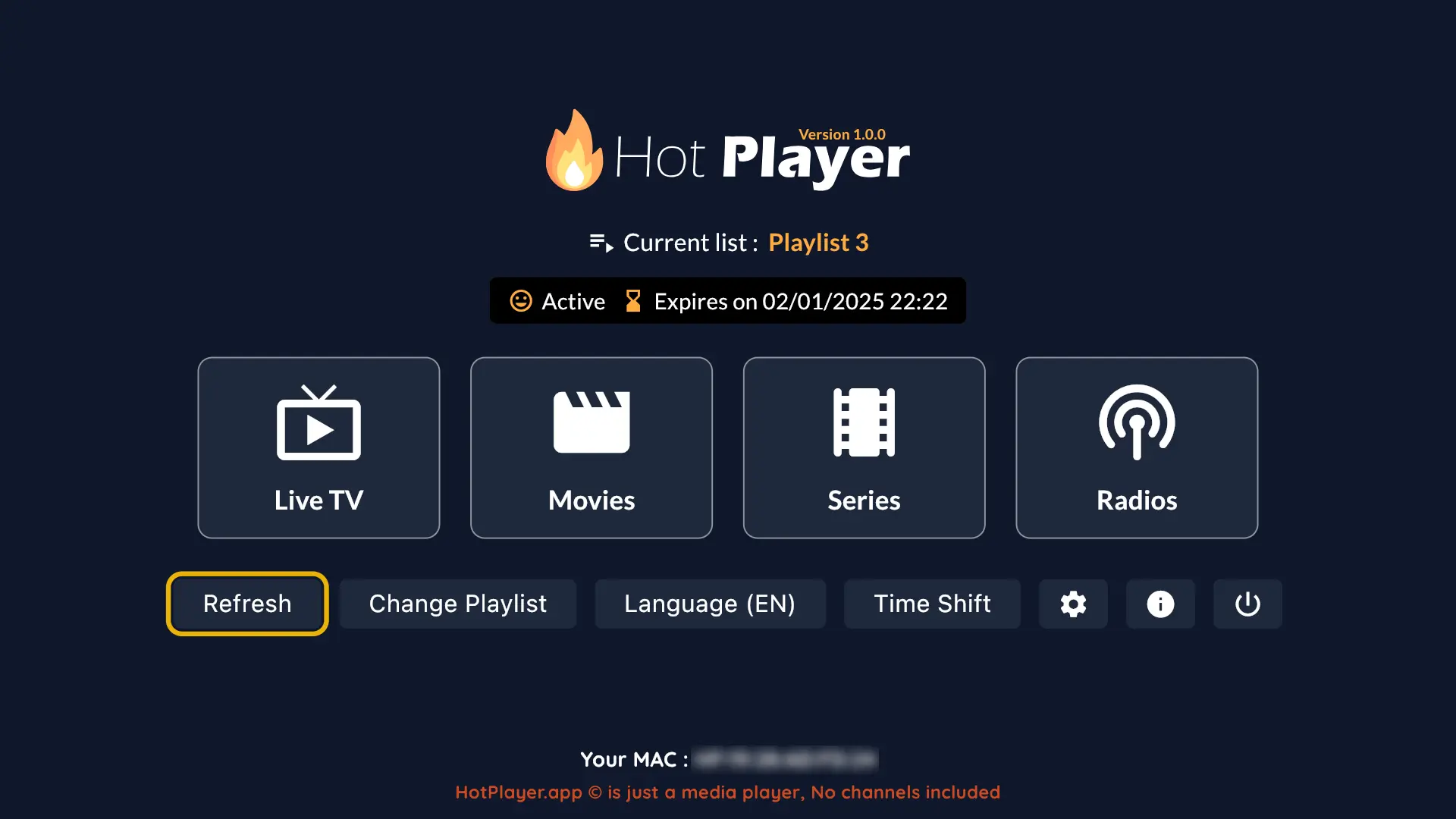 هذا ليس قائمة تشغيل او اشتراك قنوات هذا تفعيل التطبيق HotPlayer فقط